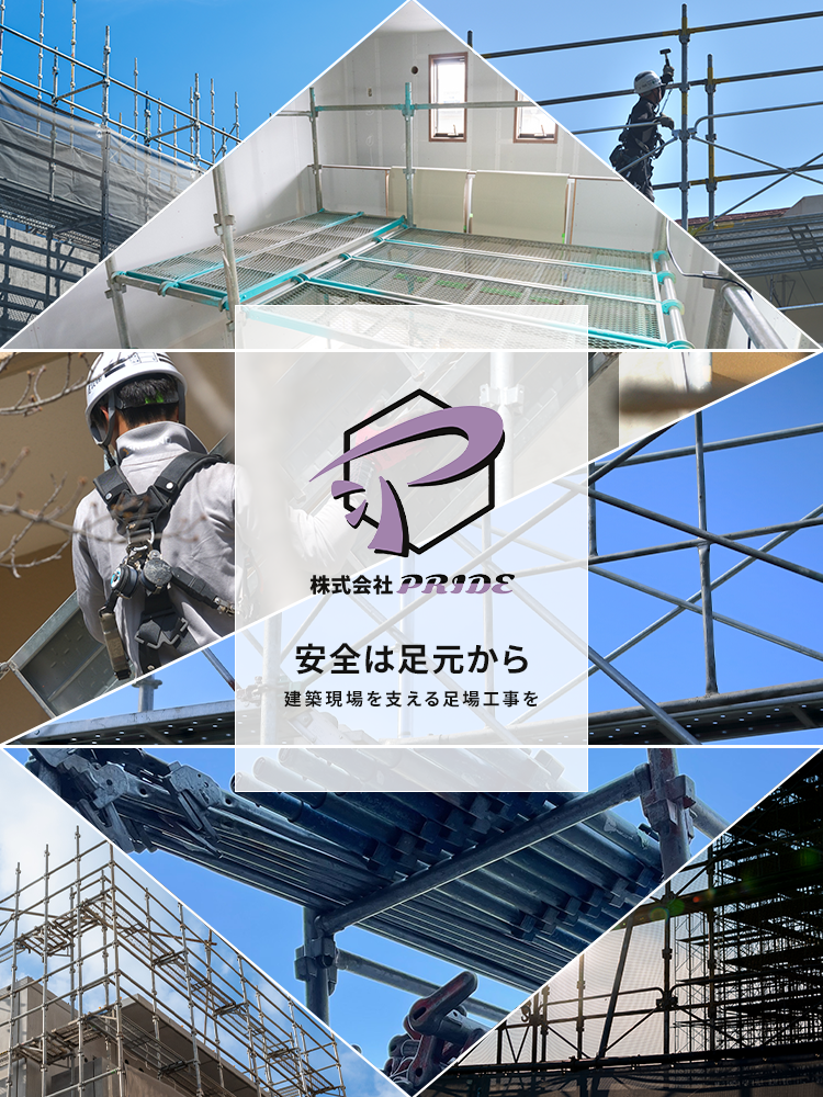 埼玉県春日部市の足場工事業者、株式会社PRIDE。自身の仕事にプライドを持ち、最初から最後まで妥協のない足場工事を提供いたします。