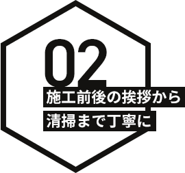 また、施工後の掃除も丁寧に実施。「いい会社だった」と思っていただくには、片づけまで気を抜かないことが大切だと考えておりますので、最後まで丁寧さを忘れません。