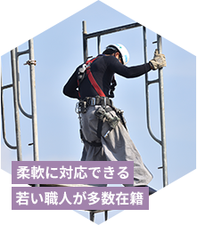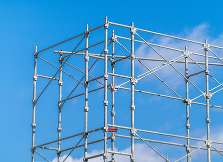 比較的簡単に組立てられるため、短工期・低コストでの施工が実現。安全で作業がしやすいような、くさび式足場工事を提供いたします。